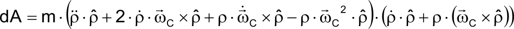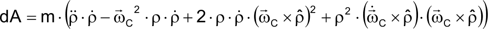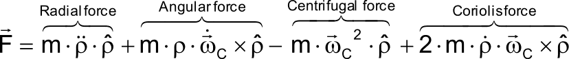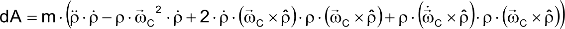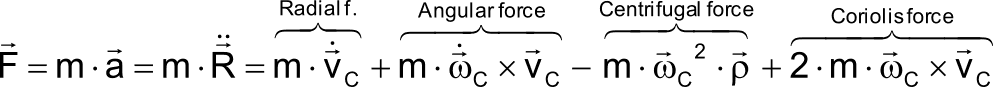 The first term denotes force caused by acceleration of the body in respect to the axe of