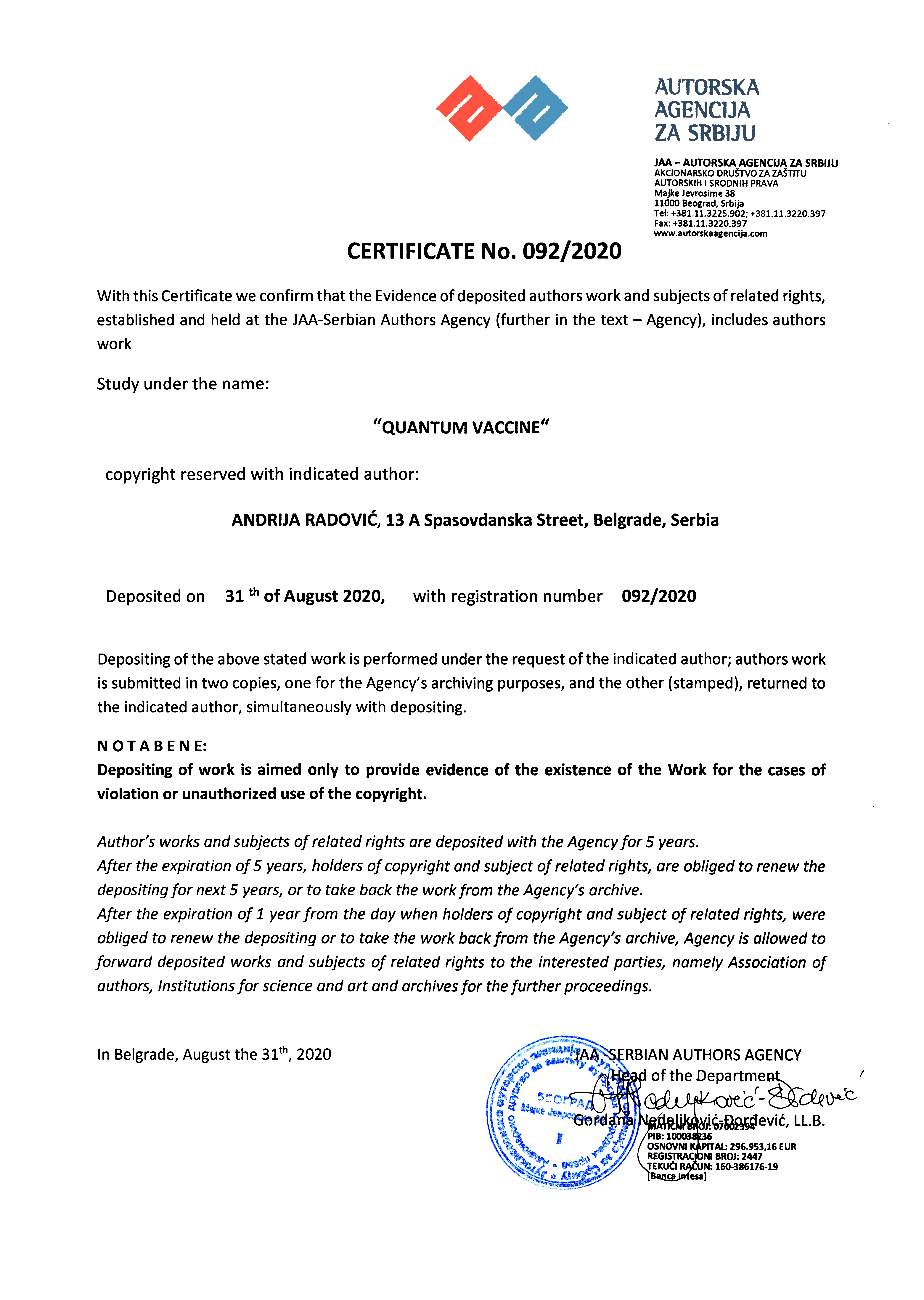 Attention: Although this text is purely theoretical it is based on solid premises, therefore I do preserve a legal right to posses a fraction of all of the patents and royalties of eventual vaccines, masks and protocols whose creations are inspired and initially guided by this particular text of mine. Author: Andrija Radović ©2008 & ©2020, All Rights Reserved.